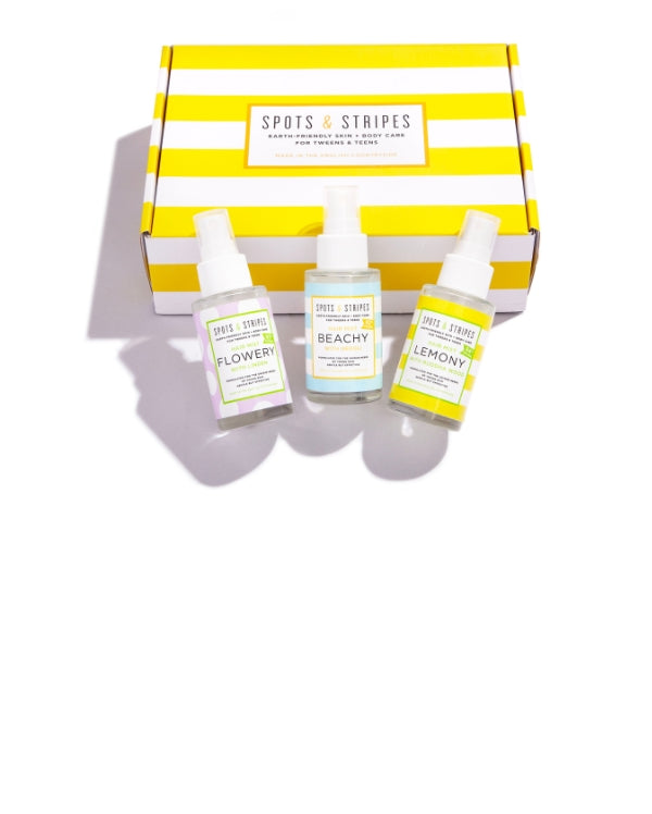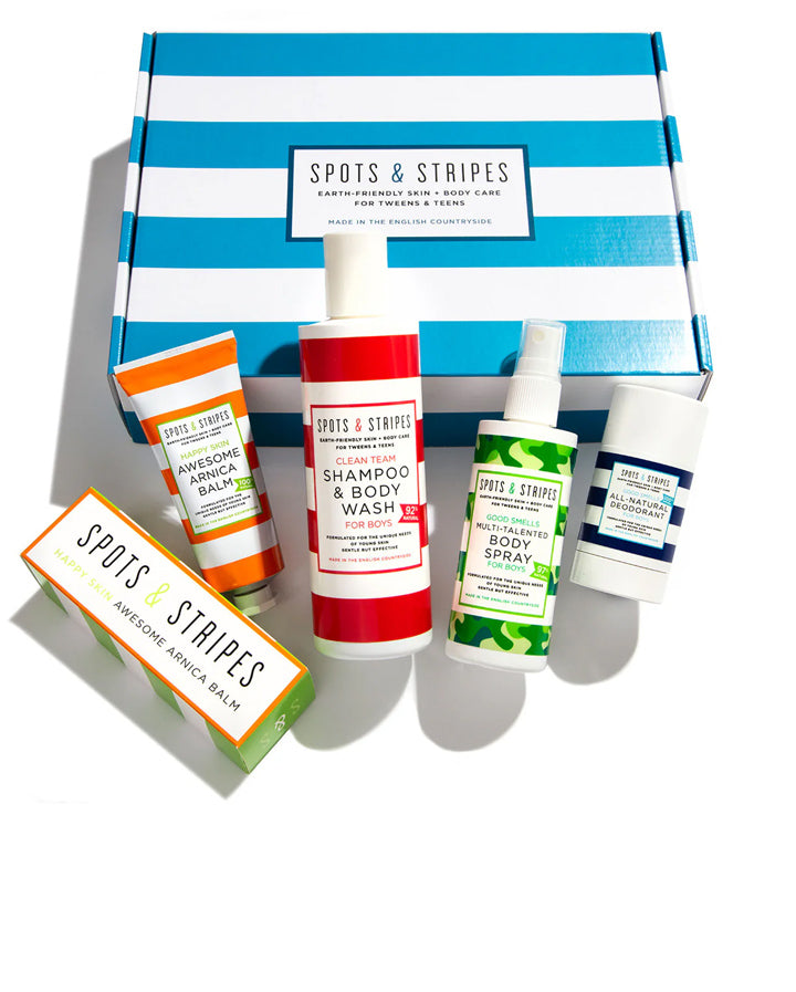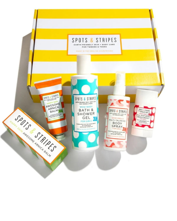A favourite with parents (and generous grandparents), these big and beautiful boxes contain the whole world of Spots & Stripes! From our hero products, to all our skin-, hair and body care best-sellers, they’re the ultimate treat for teens and tweens.