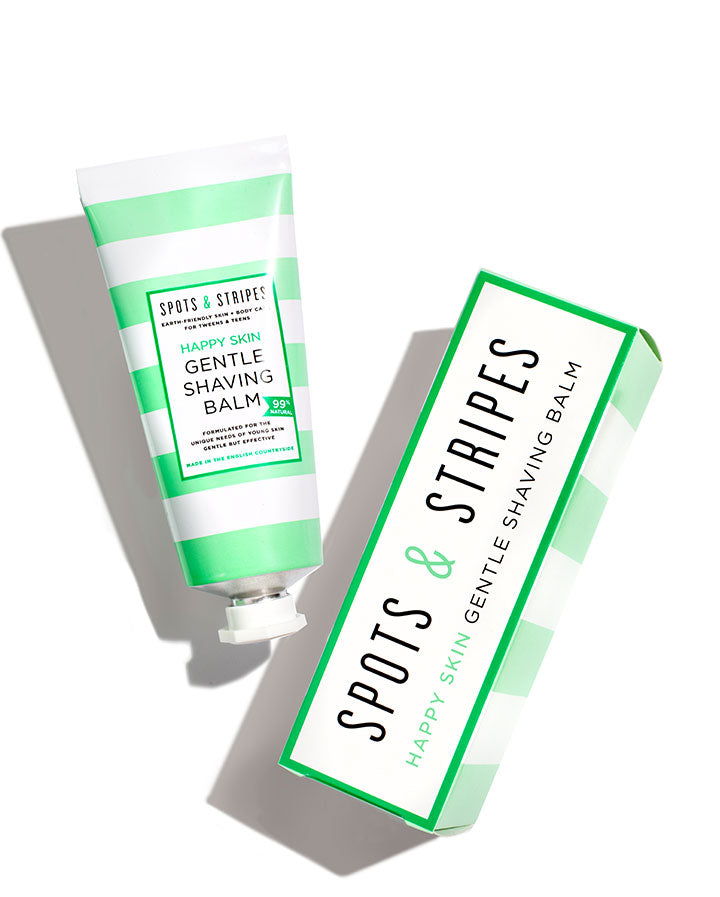 NEW! Two easy-to-use essentials to keep teen faces smooth, clean and clear. Our Happy Skin Gentle Shaving Balm is a revolutionary, 99% natural balm that shaves teen faces (and bodies) without drying the skin or upsetting its natural balance. Skin Goals Gentle Cleansing Lotion is our best-selling cleanser for young faces - super-effective on blemishes, without stripping their delicate skin of essential moisture. Packed in our signature pale blue, stripy gift box with stickers and a card.